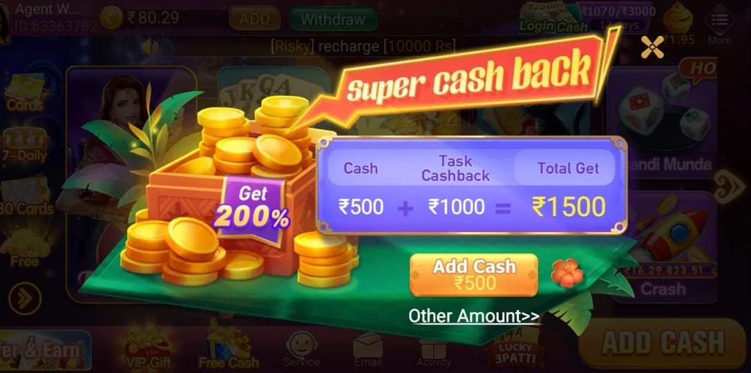 दोस्तो आपको Teen Patti Gold Game के अन्दर पैसे Add करने के लिए Add Cash को Click करना है। में आपको Step By Step Guide बताने वाला हु।